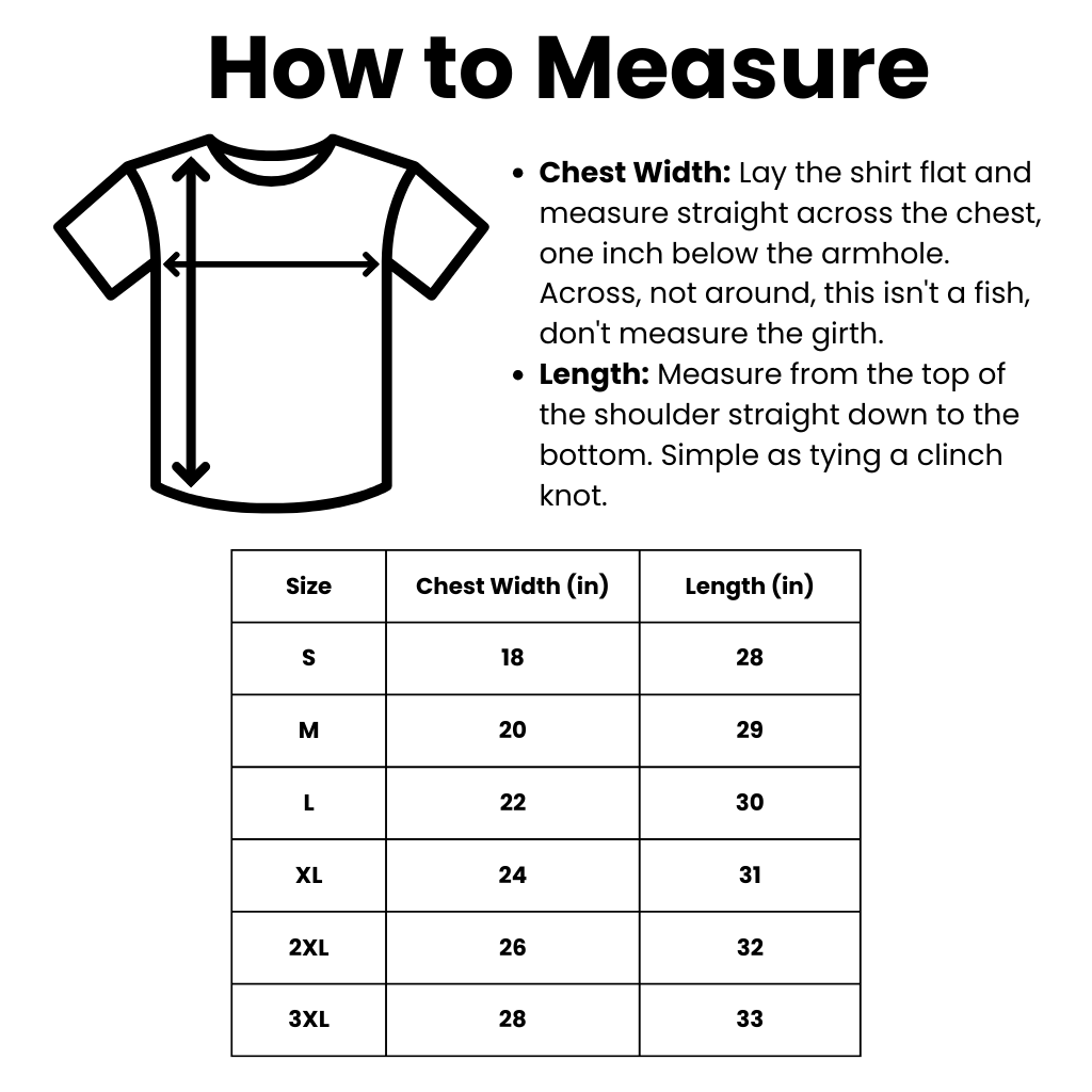 Made from 100% ring-spun cotton using the Gildan 64000, because if you’re going to be fishing all day, you might as well be comfortable doing it. This unisex tee is lightweight, soft, and broken-in right out of the package, no stiff, cardboard-shirt nonsense here.